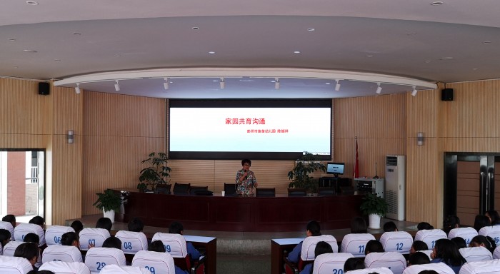 5月9日下午,成都石化工业学校邀请彭州市苗苗幼儿园陈继祥园长在北校区第一会议室举行了一场题为“家园共育沟通”的讲座。学前教育教研组全体教师、2017级学前教育专业全体学生参加了此次讲座。