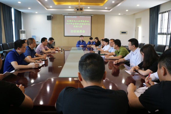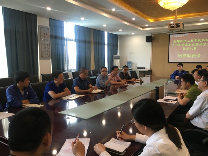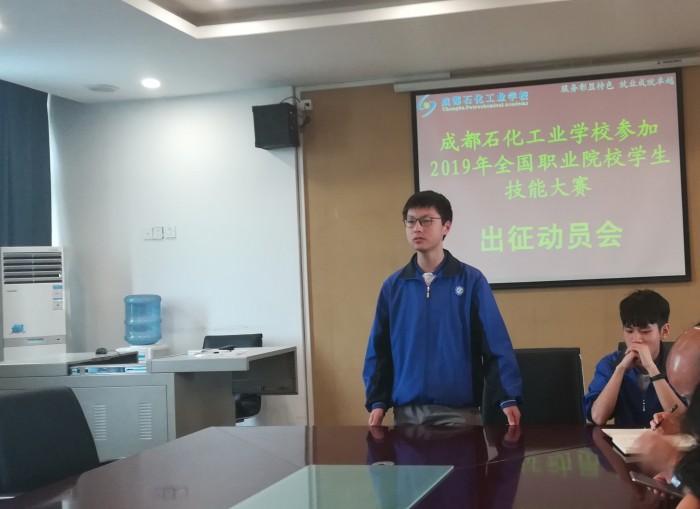 为积极备战2019年全国职业院校学生技能大赛,在全国赛场上充分展现学生专业技能水平和综合职业素养,鼓舞全体参赛师生树立起坚定的信念和高昂的斗志,5月17日上午,成都石化工业学校在北校区第二会议室召开了国赛出征动员会。学校相关领导及教务处、电子科、化工科主要负责同志、参赛项目指导教师、参赛学生共20余人参加会议?;嵋橛傻澄?、副校长周川益主持。