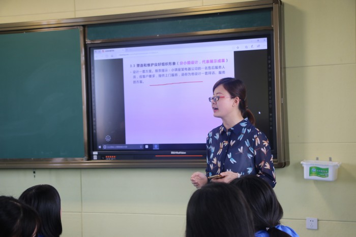 成都石化工业学校政治教研组鄢范洁老师献上一堂生动有趣的《普遍联系和人际和谐》,蒲江县职业中专学校的毛闻生老师从专业角度展示《职业礼仪塑形象》。