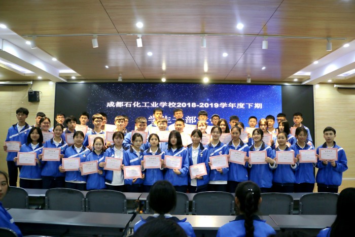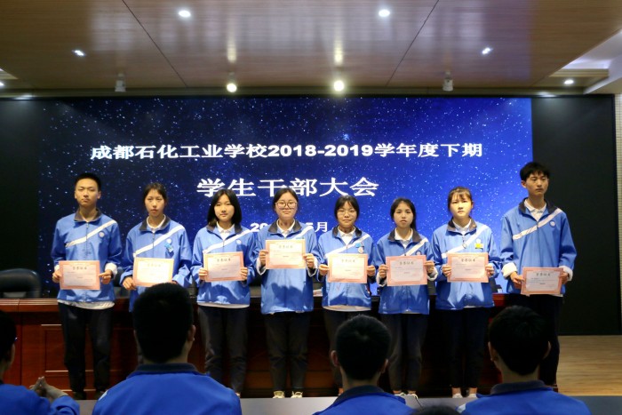 大会表彰了在纪念五四运动100周年主题活动、2019年职教体验参观中涌现出的2018级学前教育2班廖思琪、2018级计算机3班毛培森、2018级化学工艺班尹佳鑫等45名优秀学生干部和陶艺社、剪纸社等优秀社团。
