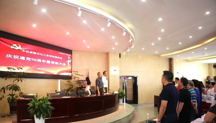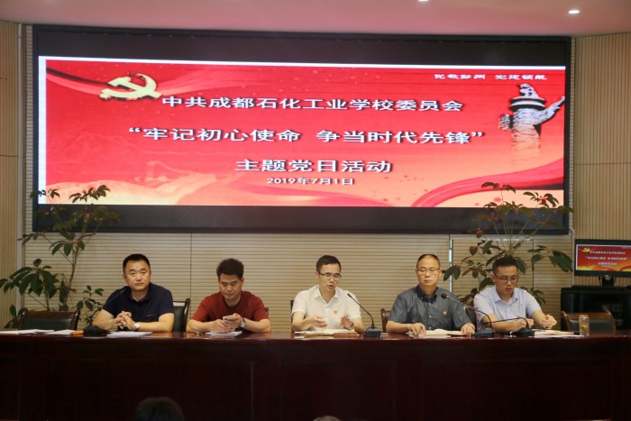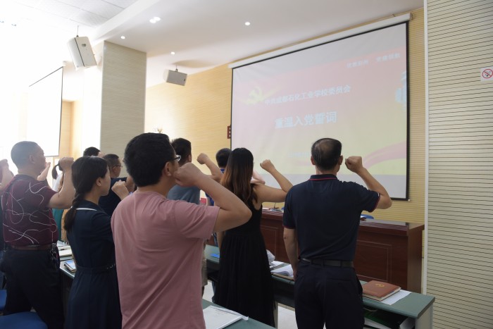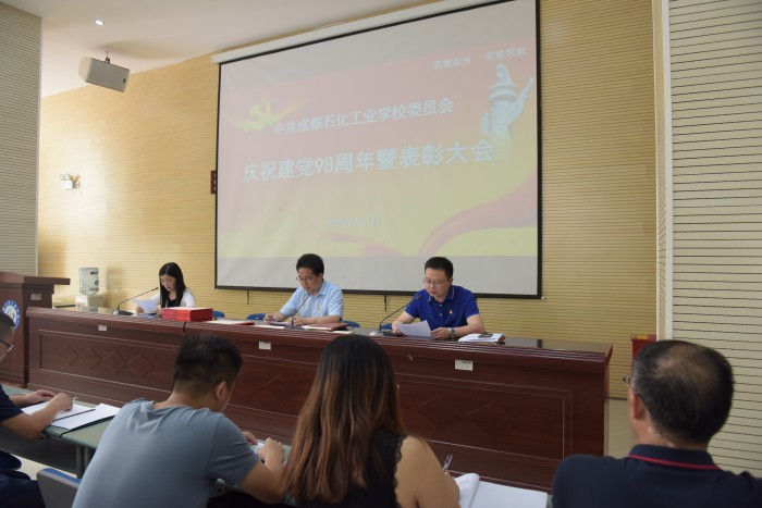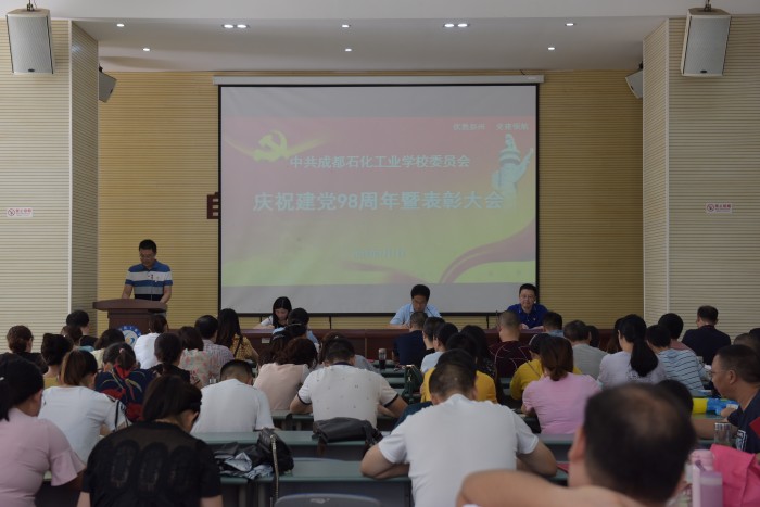 7月1日,在中国共产党建党98年之际,中共成都石化工业学校党委“不忘初心 牢记使命”主题教育活动暨“七一”表彰大会在庄严的《国歌》声中拉开序幕?;疃帜媳毙G苯?,校党委成员、正式党员、入党积极分子近160人参加了主题教育活动。