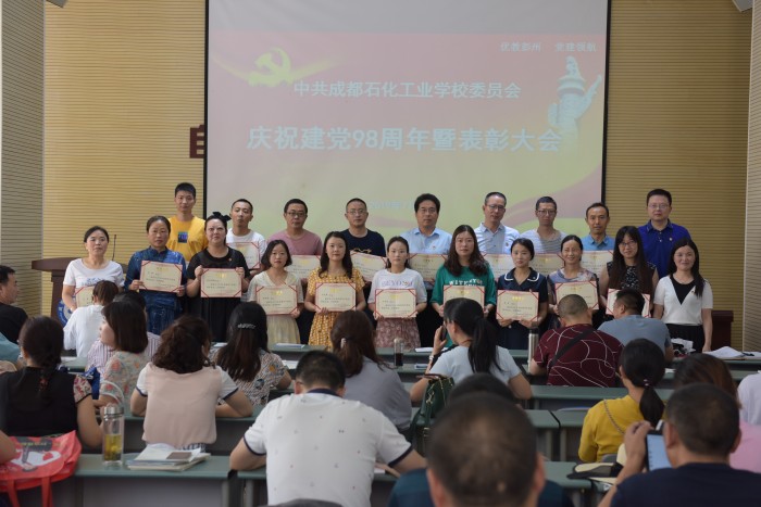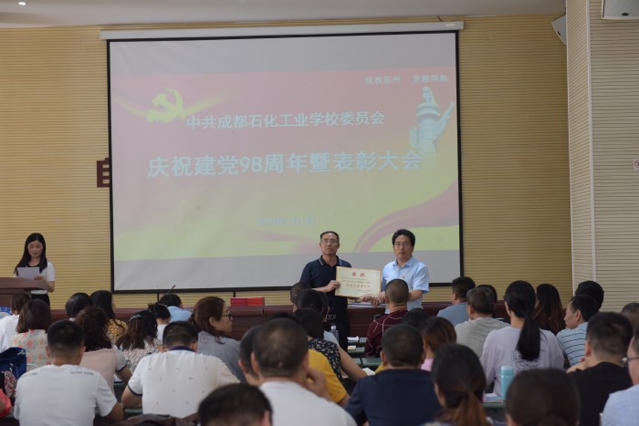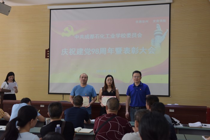 大会宣读了中共成都石化工业学校党委“七一”表彰先进决定,并为评选出的30名优秀党员教师、7名优秀党务工作者、2名优秀支部书记及2个先进党支部颁发了荣誉证书。此后,优秀党员代表肖敏老师从教育教学等工作方面与大家分享了作为一名普通党员教师在平凡岗位上的付出与努力,讲述了身边那群默默无闻、无私奉献、忠于职守、锐意进取、自强不息的彭州职教人的感人故事,诠释了新时代共产党人的初心和使命。优秀党员代表李猷老师表示要将这次表彰作为新起点,会更加勤奋的工作,刻苦的学习,履行好党员职责,起好模范带头作用,为学校的发展和腾飞贡献一份力量。