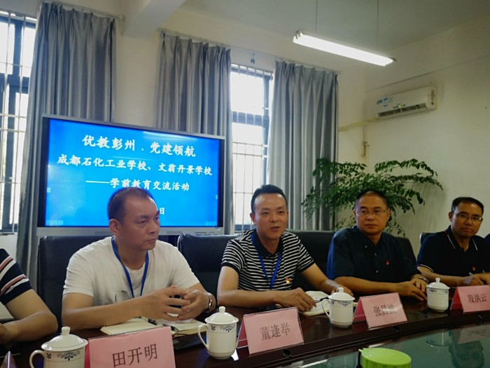 7月5日,中共成都石化工业学校党委走进了彭州市文翁丹景学校携手开展了以“不忘初心、牢记使命”为主题的城乡党建结对共建活动。中共成都石化工业学校党委副书记段洪云、党办主任左茂云、学前教育专业学科带头人郑淼及党员、教师代表、中共彭州市文翁丹景党支部班子及党员代表参加了此次活动。