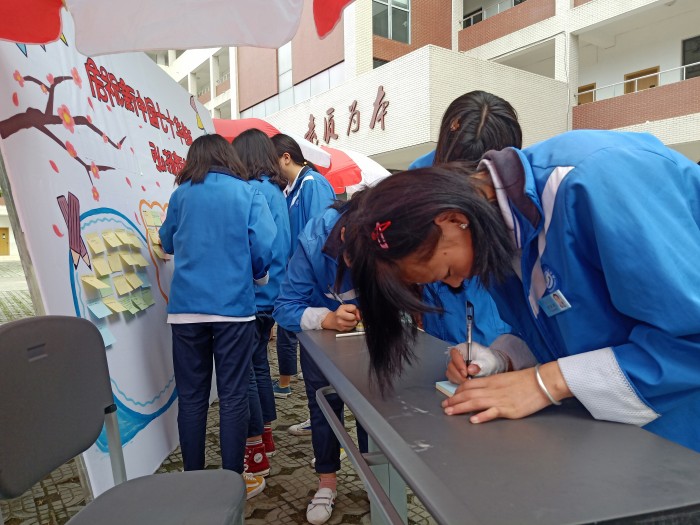 刘应建校长深情勉励同学们:一要爱国,忠于祖国,忠于人民。青年兴则国家兴,青年强则国家强。同学们要有一颗中国人的心,把爱国当成一种信仰,熔铸在自己的血液里。要拥有心怀天下的志向、家国天下的爱国主义情怀。二要坚定信心,暑期动画电影《哪吒之魔童降世》火爆全国,当中哪吒彰显出敢于同命运抗争的精气神。人生是一场马拉松和长跑,在穿越荆棘中学会坚强,练就百折不挠的氮气,保持乐观向上的精神,自己的努力终将成就辉煌的明天。三要养成良好的习惯。细节决定成败,习惯成就人生。养成良好的生活、学习、待人接物的习惯,成就一种优秀的品质,终身受用。最后他殷切希望全体同学借助国家职业教育改革、高职扩招100万、我校“人人皆可升学”、“班班都是升学班”的契机,精粹成器,化石为玉。