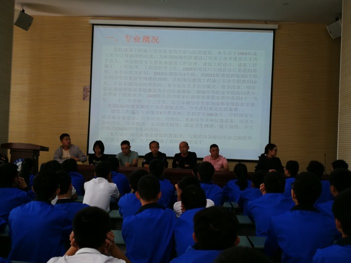 该科教学副科长向该专业全体新生介绍了全体专业教师后,建筑教研组组长具体向同学们介绍了建筑专业“做什么”、“学什么”、“干什么”;各专业教师也就自己所教的学科和同学们进行了交流,希望同学们在接下来的专业学习中认真学理论,踏实练专业技能,在一砖一瓦中筑就自己未来成功的职业生涯。