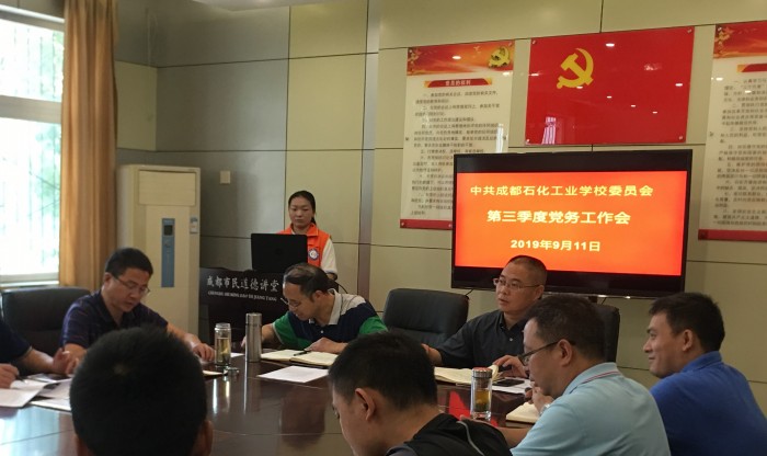 为认真贯彻落实新时代党的建设总要求,进一步规范学校基层党组织建设,增强做好意识形态工作的自觉性、主动性、能动性,9月11日,成都石化工业学校党委在北校区党员活动室召开了第三季度党务工作会。