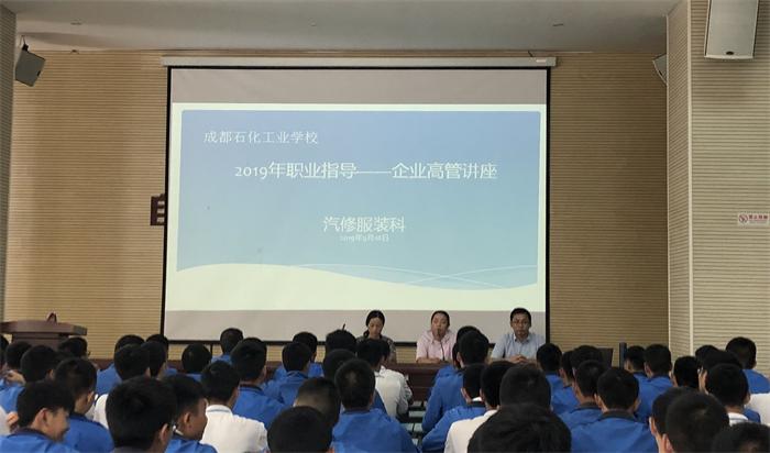 9月18日下午,吉利控股集团人力资源中心招聘与校企合作经理陈富兵来到成都石化工业学校组织校园宣讲。2018级汽车运用与维修1、2、3班学生参加了本次宣讲会。