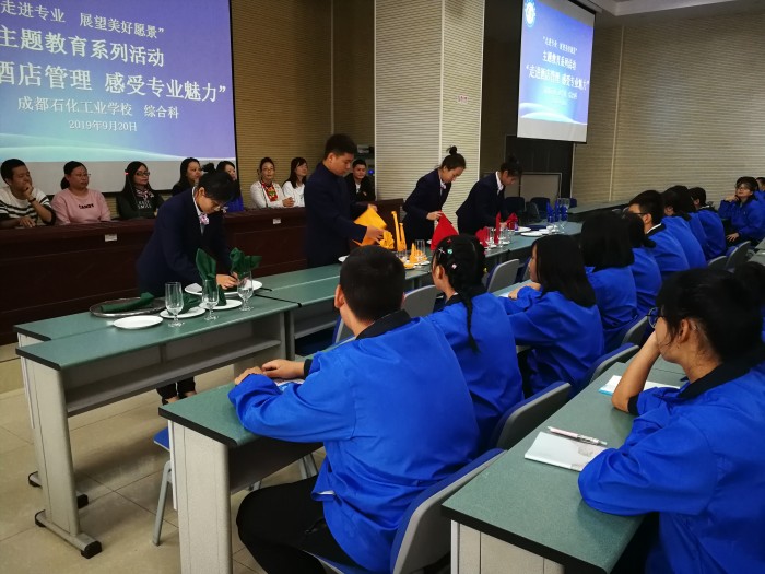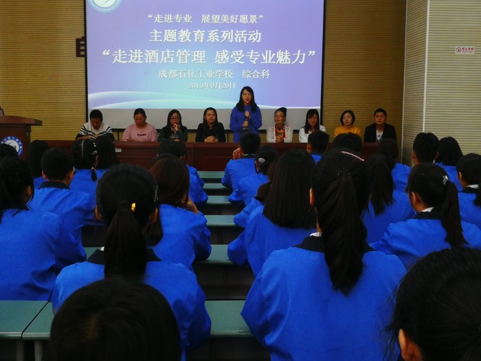 为进一步推进专业建设,让2019级酒店管理专业新生了解专业,认识专业,感受酒店管理专业的独特魅力,9月20日上午,成都石化工业学校综合科酒店管理专业2018级学生代表、2019级新生以及全体专业教师在南校区多功能厅举行了以“走进酒店管理 感受专业魅力”为主题的师生交流活动。
