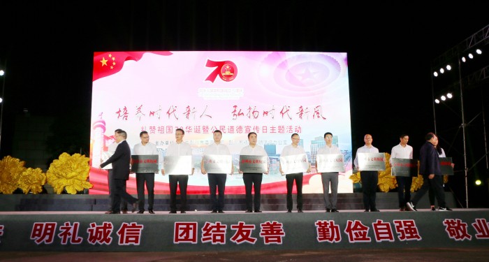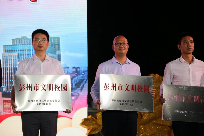 9月20日晚上,在彭州市群众艺术馆广场开展的“礼赞祖国70华诞暨公民道德宣传日主题活动”中,成都石化工业学校获得彭州市精神文明建设委员会颁发的“彭州市文明校园”称号。