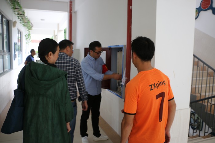 本次校区间交叉检查按照“全覆盖、零容忍、严整改、重实效”的总体要求,9月24日、9月26日由政教处、安保科同志分成两组,分别对南北校区的教学楼、实训楼、学生公寓、食堂、运动场等师生集中场所进行了全覆盖交叉检查,做到了“横向到边,纵向到底”。重点对校园消防安全、安全防范、供电用电安全、大型仪器设备运行安全管理等情况进行了全面细致的排查,深挖细查各部门、各区域可能存在的安全隐患,力戒形式,不走过场,确保交叉检查工作不留盲区、不留死角、不留余地、不留尾巴。交叉检查中发现的安全隐患逐一排查、登记,现场向有关部门负责人进行了反馈,要求立即建立问题清单、跟踪整改、严肃问责,对能够立即整改的隐患马上进行整改;对整改有难度的安全隐患,要求设置警示标志,做好防范措施,抓紧时间协调整改,确保校园安全稳定。