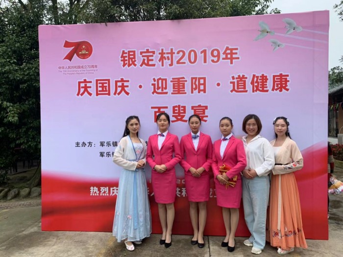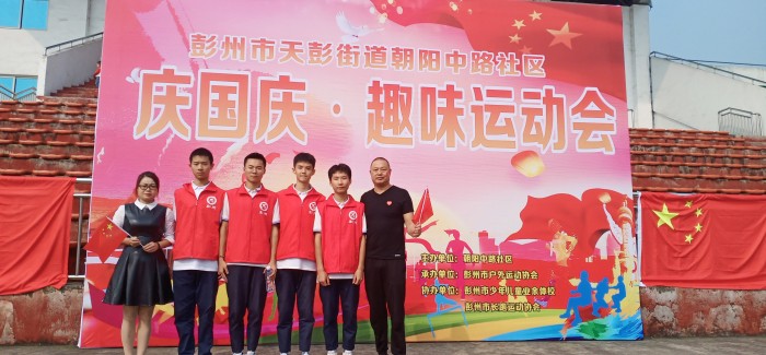 9月28日,4名我校学生志愿者参加彭州市朝阳中路社区“庆国庆?趣味运动会”现场秩序维护及协助运动会开展;9月29日,我校学生志愿者参加彭州市军乐镇银定村“欢度国庆?喜迎重阳?创健康银定”礼仪服务和“重阳节“健康的秘密”寻访社区长寿老人暨社区健康宣传月”敬老助老服务。