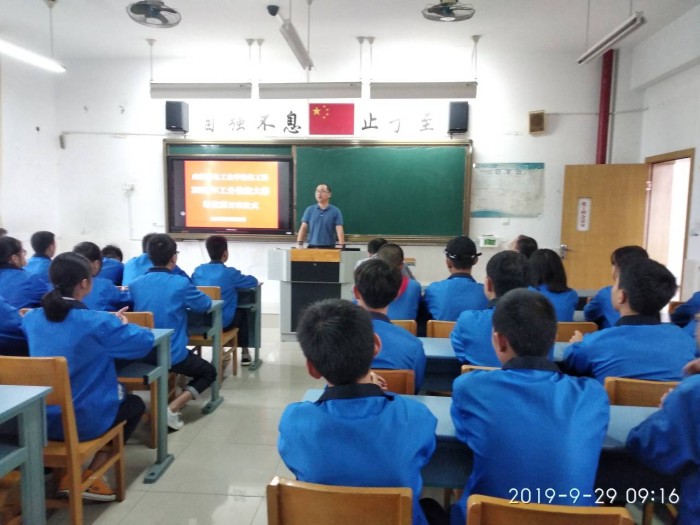 仪式上,化工科负责人对经过层层选拔的进入培优班的30名同学表示祝贺,并向同学们介绍了化工科在2019年全国技能大赛上取得了二等奖的优异成绩,鼓励同学们要在此起点上更上一层楼,在平时的训练中发扬不怕苦不怕累、顽强拼搏的竞技精神,“每天一点进步,生命一大进步”。