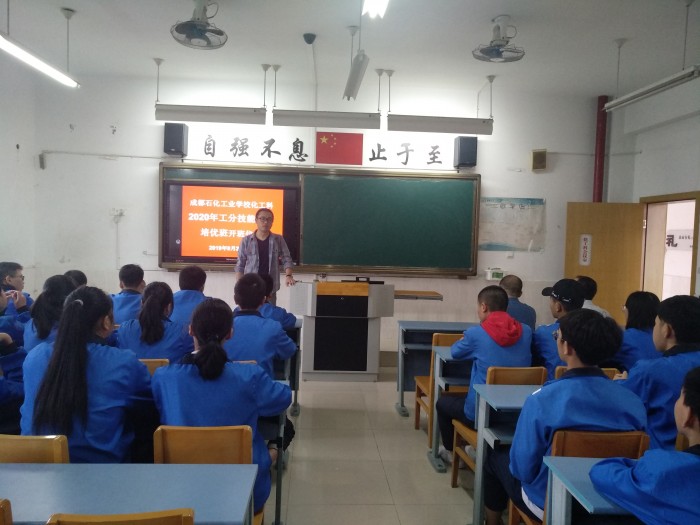 日前,成都石化工业学校化工科2020年工分技能大赛培优班开班仪式在北校区409会议室举行。学校党委委员、副校长罗光宇,教务处、化工科相关负责同志,全体指导老师参加了开班仪式。开班仪式由该科教学副科长主持。