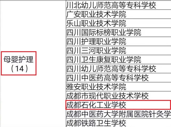 学校向四川省教育厅备案后,经与各培训评价组织、教育行政部门沟通确认,教育部确定成都石化工业学校学前信息科学前教育专业入选中国职业技术教育第二批1+X证书制度母婴护理职业技能等级证书试点专业。