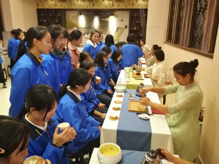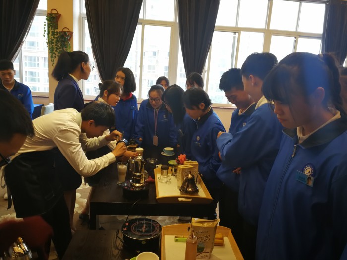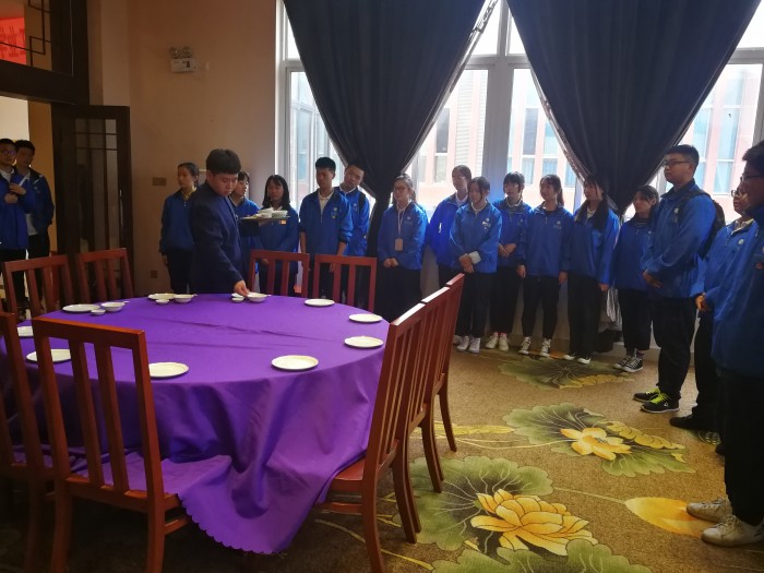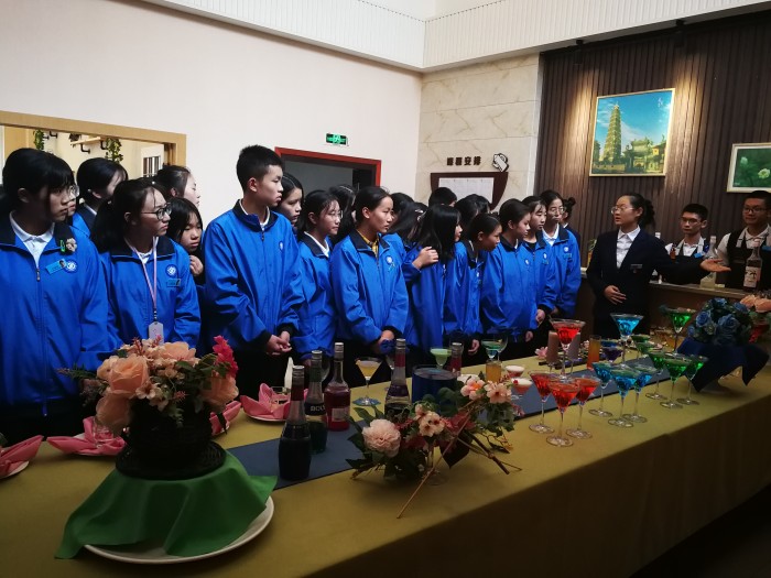 19级酒店管理专业学生在班主任老师的带领下,依此参观了前厅、调酒、茶艺、咖啡、中餐实训室。参观过程中,高二年级同学们耐心细致、熟练地讲解和演示的鸡尾酒调制过程、各类茶冲泡技艺、咖啡制作工艺以及中餐摆台的流程和技巧等,让高一新生们深感佩服并深受启发,纷纷表示在校期间一定要学好一技之长,扎实基本功,为自己的职业生涯迈好第一步奠定坚实基础。