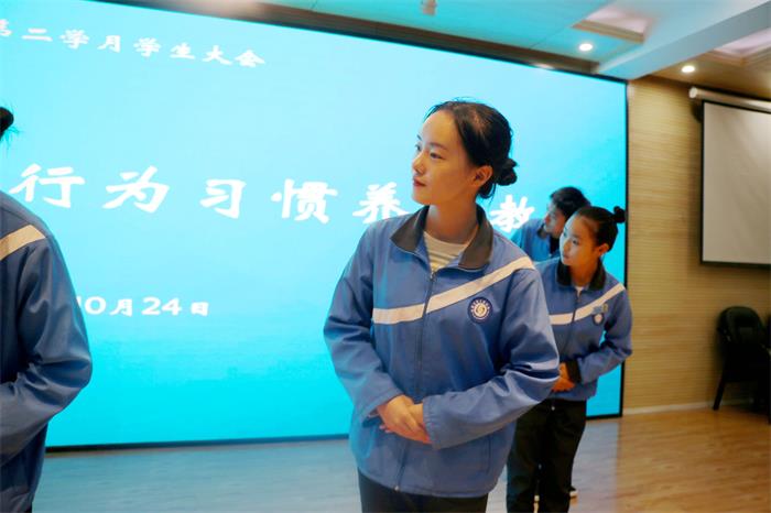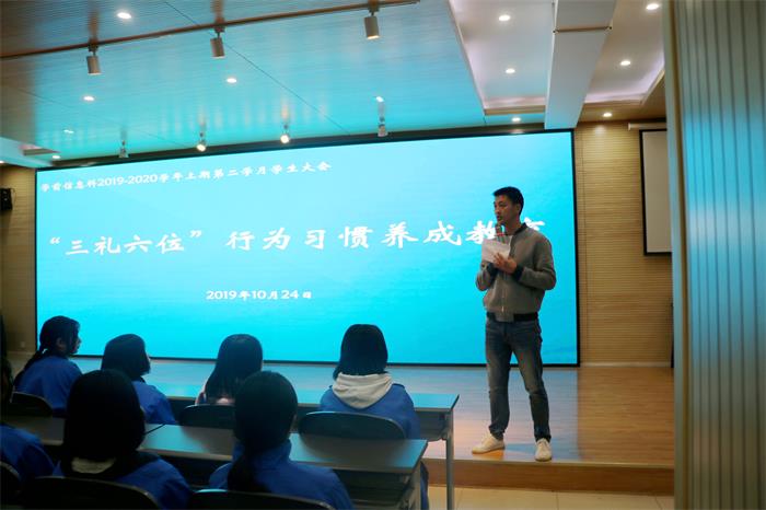 本次教育会邀请了校礼仪队的同学进行礼仪操展示,让同学们了解和掌握生活中的基本礼仪动作。德育副科长结合同学们在校生活的视频片断、照片向全体学生做了剖析,让同学们更直观的了解不文明行为对自己、他人、班级和学校带来哪些不良影响。