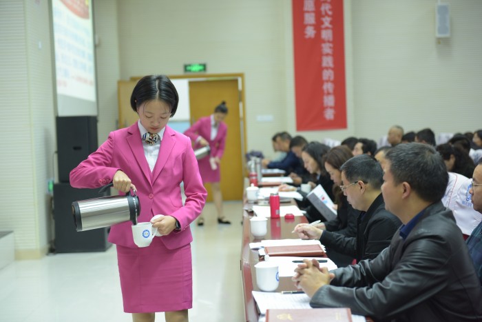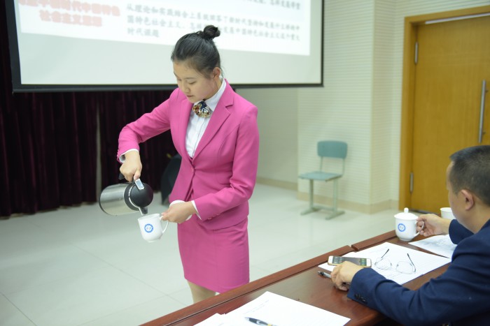 活动中,小化石以文明的礼仪接待、标准的手势指引、暖心的会场服务、规范的职业素养为党的主题教育贡献力量。他们的言行举止、礼节礼貌、工作精神和高标准服务能力体现出了大校风范,得到了与会领导和嘉宾的高度评价。活动的两天,天空一直下着小雨,但丝毫没影响到小化石们的服务状态。各个规定时间段,小化石们都是提前达到服务地点,规范完成服务任务。会议开始前,雨越下越大,怕担心参会领导嘉宾找不到会场位置,大家干脆打着雨伞坚守在各自岗位。遇到没带雨伞的嘉宾,立即主动迎上去,护送嘉宾到会场。就餐指引时,天气任然没有好转,由于过道狭窄,小化石为了避免自己的雨伞与嘉宾发生刮碰,造成拥堵,直接把伞放在地上,淋着雨为嘉宾指引就餐方向。最后,在几位嘉宾的劝说和老师的要求下,才重新把伞打开。正是因为小化石们对工作的敬业,才让前来参加活动的领导嘉宾能静下心来认真学习,有效维护了活动顺利开展。