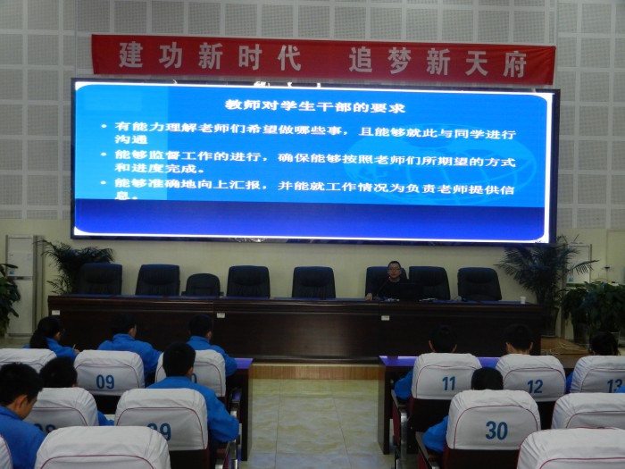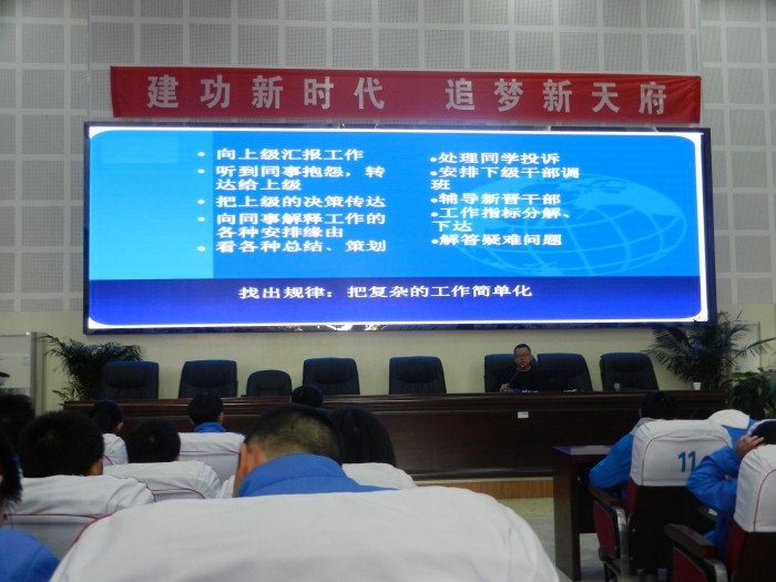 本次领袖训练营主要针对电子科全体学生干部、班委干部进行管理能力提升培训,德育副科长根据学生干部和班委干部近期学习工作中出现的问题,针对性地从学生干部管理技巧、沟通技巧、服务技巧和自我提升四个方面进行培训,要求学生干部要以服务为宗旨,锻炼为目的,全心全意的为全科师生服好务。