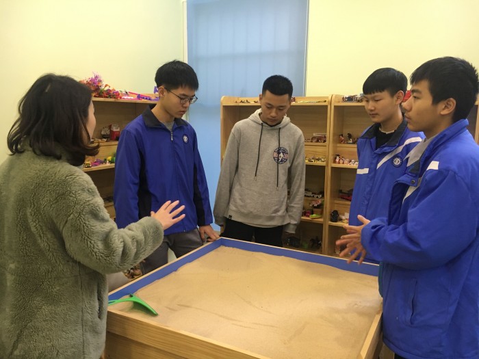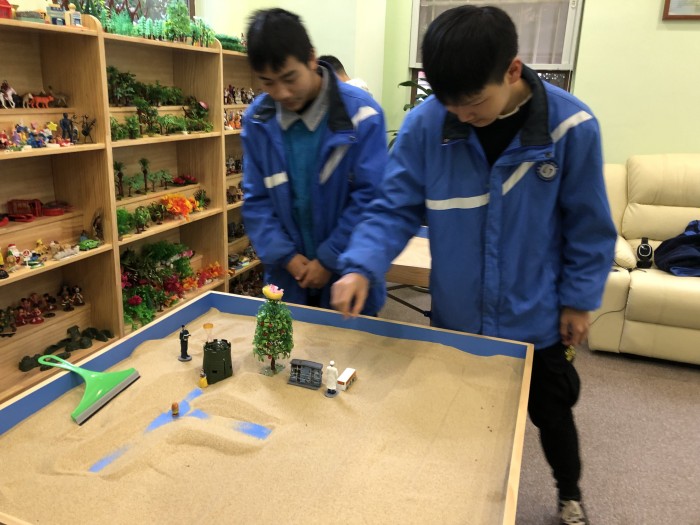 辅导过程中,葛老师对同学们进行了心理疏导和关于比赛的主题沙盘演练,在轻松愉快的活动氛围中,同学们热情参与,释放高强度训练和比赛带来的内心压力,缓解紧张焦虑的情绪。