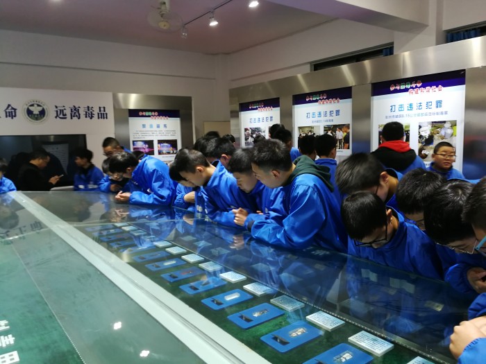 在毒品样本陈列室内,同学们认真查看并阅读了各类毒品的简介、及毒品的危害相关专业知识,图文并茂的展示厅,触目惊心的吸毒者悲惨经历,大家深刻的感受和了解到毒品对个人、对家庭、对社会的严重危害。明白了只要加强自我控制能力,珍爱生命,远离毒品,这些悲剧是可以避免的。