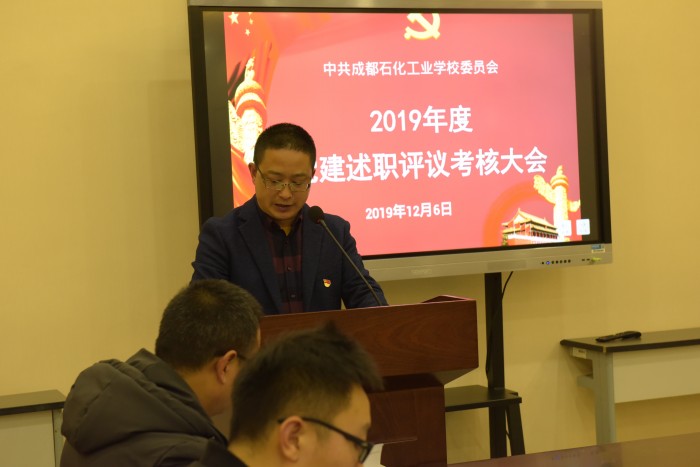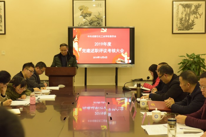 成都石化工业学校党委于12月6日在南校区第四会议室召开了“不忘初心、牢记使命”专题组织生活会暨支部书记抓党建工作述职评议考核大会?;嵋橛傻澄笔榧嵌魏樵浦鞒?,市教育局党组成员、副局长周义,市教育局“不忘初心、牢记使命”主题教育第七巡回指导组副组长肖成云到会指导,学校全体党委委员、支部书记、支部委员、党员代表、在校政协委员参加了会议。