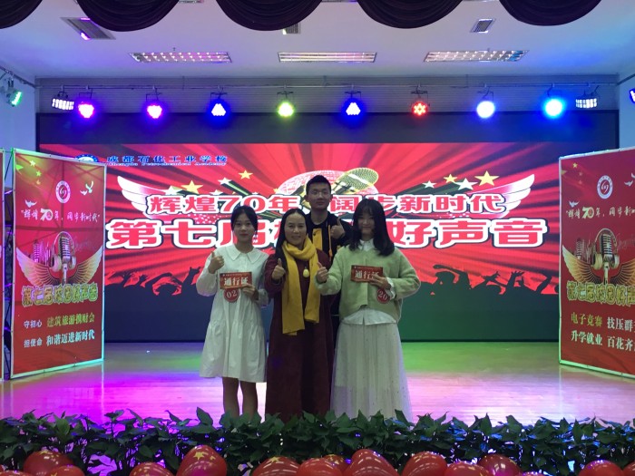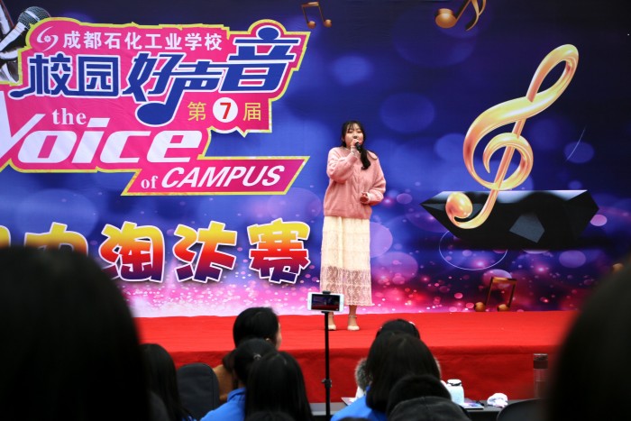 承载梦想,放心去飞;青春执著,勇敢去追。12月5日,由成都石化工业学校校团委主办的“辉煌70年,阔步新时代”第七届校园好声音复赛分别在南北校区学术报告厅举行。本次比赛由校园资深音乐人杨志强老师、张岚老师、何丽荣老师、杜甫老师、陈琳琳老师、邹媛媛老师担任评委导师,学校政教处行政、各专业科德育副科长担任比赛监督,各专业科近1000名同学到场为比赛选手呐喊助威。