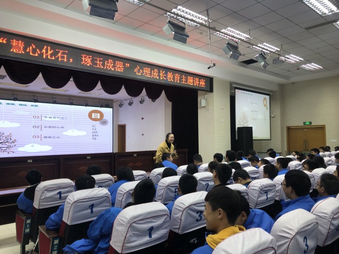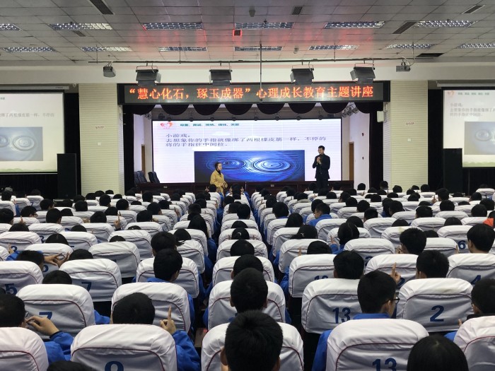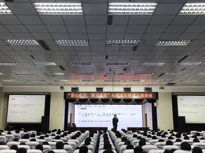 12月11日,成都石化工业学校南北校区举行了由学校心理成长中心开展“培养感知幸福的能力”专题心理健康讲座。此次讲座由心予心教育培训中心国家级心理咨询师、中科院心理研究所心理咨询导师沈晓昕,催眠师代羿联袂进行,700余名学生聆听了此次讲座。
