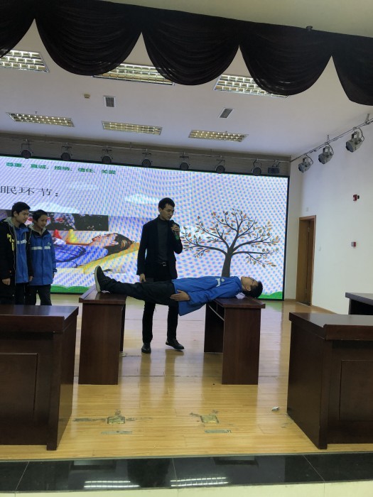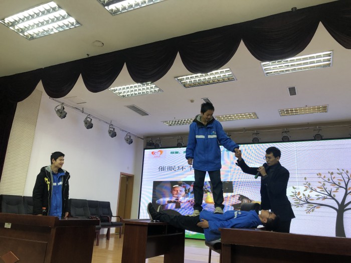 讲座现场,学生们积极与沈老师进行互动交流,围绕幸福是什么、如何拥有乐观的心态和感恩之心与同学们共同探讨。在沈老师的带领同学们写下并分享乐自己幸福或不幸的原因,感触良多。之后由催眠师代羿老师带领同学们分别体验了个体催眠《钢板人桥》和集体催眠《人生之旅》,同学们反响强烈热情高涨。