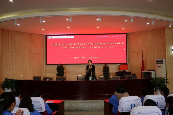 日前,我校学前信息科邀请彭州市南街幼儿园保教主任、南街幼儿园第二分园执行园长、成都市优秀青年教师、彭州市学科带头人何川老师,为2018级学前专业全体同学带来了《遇见学前教育 邂逅美丽人生》为主题的职业指导讲座。