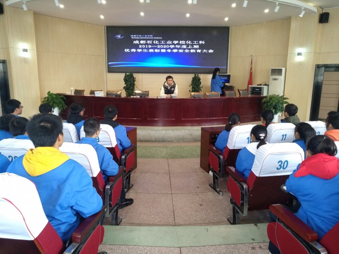 12月17日上午,成都石化工业学校化工科在北校区第一会议室召开了2019级优秀学生表彰暨冬季安全教育大会,该科办公室老师及2019级全体学生参加大会。
