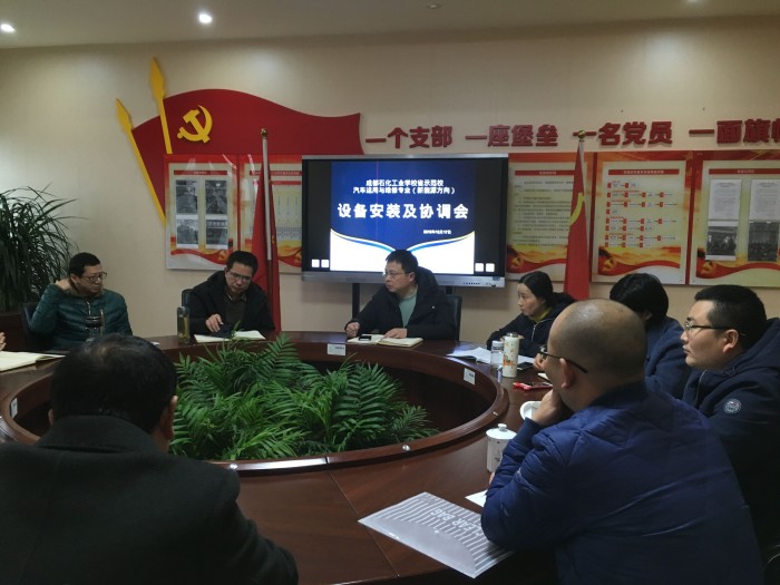 省示范校建设项目汽修专业(新能源汽车方向)设备选购与安装工作正在紧锣密鼓推进,12月17日,我校乘着势头即刻召开相关会议。会议参与人员有来自四川省众森同越科技有限公司张少华副总经理一行5人,我校周川益副校长、罗冬梅副主任、徐志友科长及相关教师。