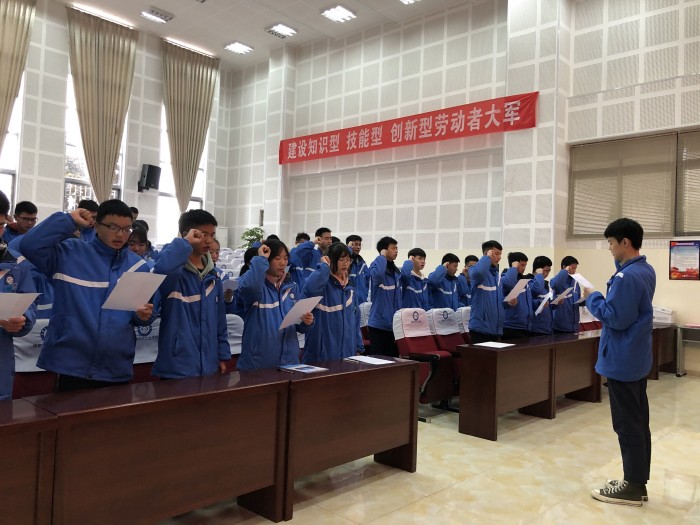 王聃向同学们介绍了京东方光电科技公司和成都石化工业学校学生在企业的成长及发展情况,希望同学们在学校认真学习专业知识和技能,同时了解企业文化、企业用工需求及各项管理制度,将来走上工作岗位后能尽快完成从学生到企业员工的身份转换。