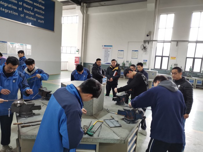 本次交流活动分为两部分,第一部分,在现代制造校的机械实训基地,参观了CAXA MES制造过程管理库房、柔性制造单元应用、焊接实训室、钳工实训室、数控加工中心实训区、数控车工实训去区、零件测绘实训室、CAD/CAM实训室、数字化工厂,整齐化、规范化、有序化的实训环境让我校教师眼前一亮;第二部分,双方学校就专业建设、设备建设、优化教学模式、提升教学质量、学生实习实训教学情况、校企合作的具体模式进行深入交流。
