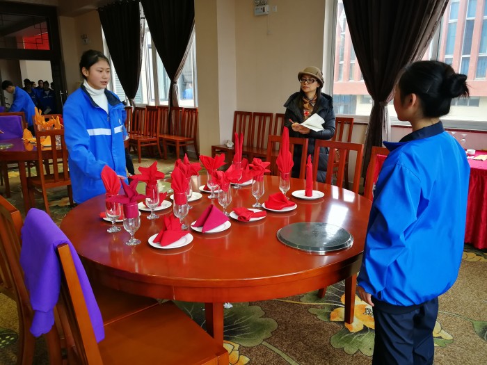 12月25日下午,我校综合科举行了2019级高星级饭店专业“餐巾折花”基本功创意大赛。