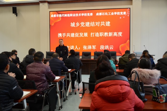 12月26日,成都石化工业学校党委副书记段洪云带领学校党委委员赴成都市现代制造职业技术学校举行了“携手共建促发展,打造职教新高度”主题党建结对共建活动。