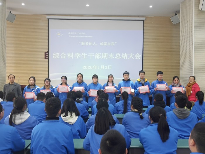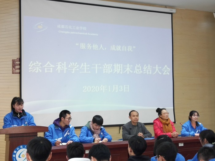 1月3日中午,我校综合科在南校区多功能厅召开2019-2020学年度上期学生干部期末总结大会,综合科德育副科长、德育干事及学生会全体成员参加了本次大会。
