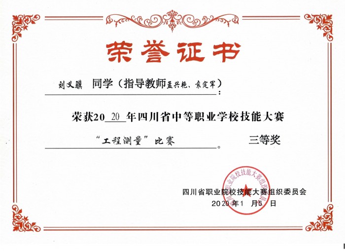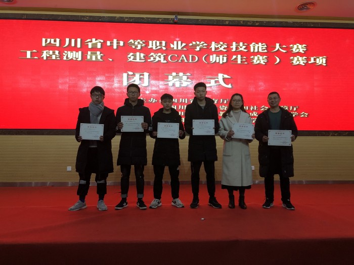 1月4日,在成都市工业职业技术学校举行的建筑工程测量比赛中,赖鸿锐,刘义骥,王李科,赵欧四名选手团结协作,健步如飞,圆满完成测量任务,喜获三等奖。