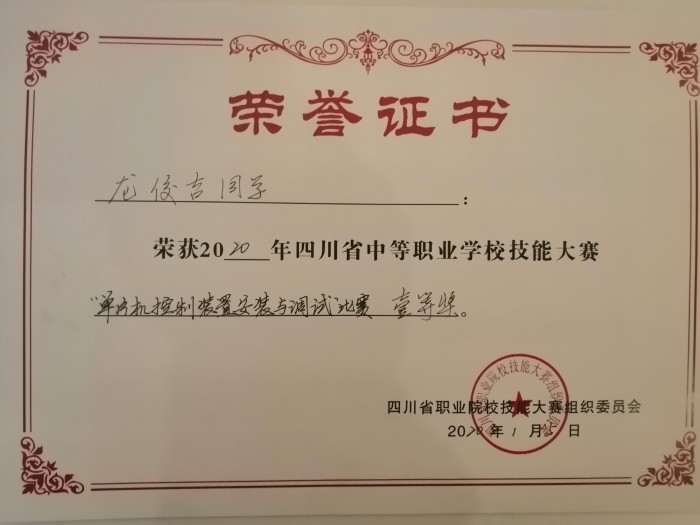 1月5日,四川省中职学生技能大赛单片机控制装置安装与调试赛项在宜宾市工业职业技术学校举行,龙俊吉在4小时的比赛中从容不迫,以过硬的专业技能喜获一等奖。