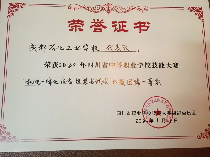 日前,在2020年四川省中职技能大赛中,成都石化工业学校学生获得两个一等奖和一个三等奖,教师获得一等奖和三等奖的优异成绩。