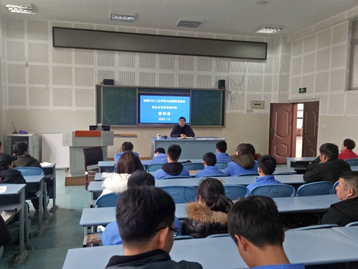 为了深入开展校企业合作,选拔参加成都市数控综合加工技能大赛的同学, 1月8日下午,成都石化工业学?;悼普倏撕傺寄芗导页せ帷8米ㄒ悼瓶瞥?、竞赛带队的相关老师、26名集训同学及家长参会。