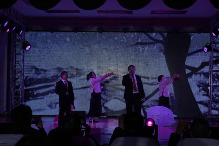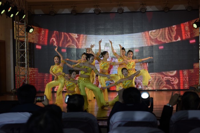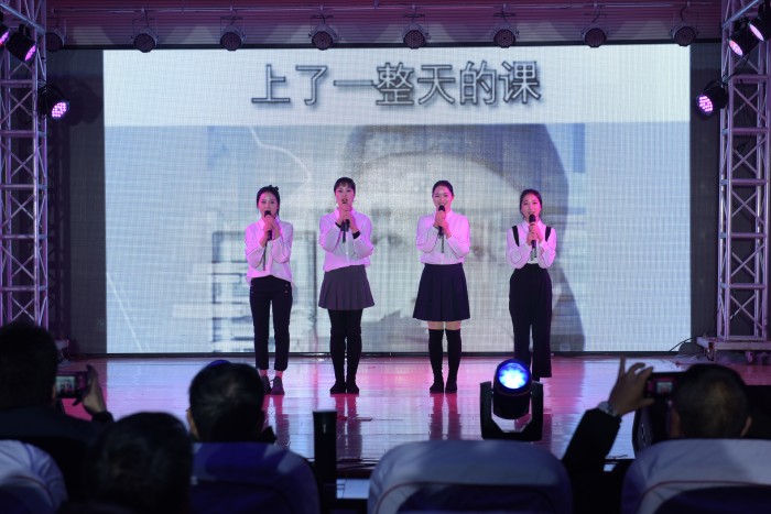 化工科《瑞狮欢舞闹新春》开场后,同学们用舞姿把诗与西域风情融合在一起,表演了唯美而感人的《敦煌》;学前信息科带来的回味年代记忆,倾听不同年代的心声的节目《向快乐出发》;机械科带来像海草一样随波舞蹈,率性而活的舞蹈《海草舞》;综合科带来快闪舞蹈《我和我的祖国》;电子科带来情景舞蹈表演《车间协奏曲》;汽修服装科带来《凝心聚力 点燃匠心》;石化学子以工匠力量向军魂致敬,表演舞蹈《工匠力量》;最后是云翔海洋教师歌唱组合带来的歌曲《大国工匠》。