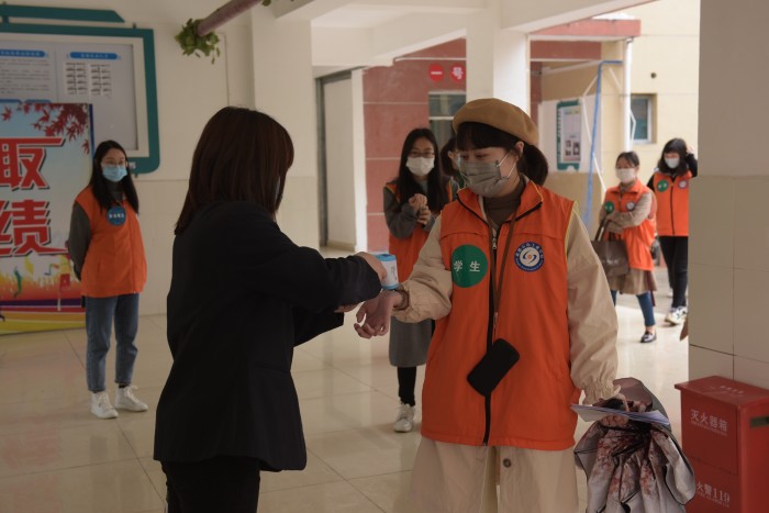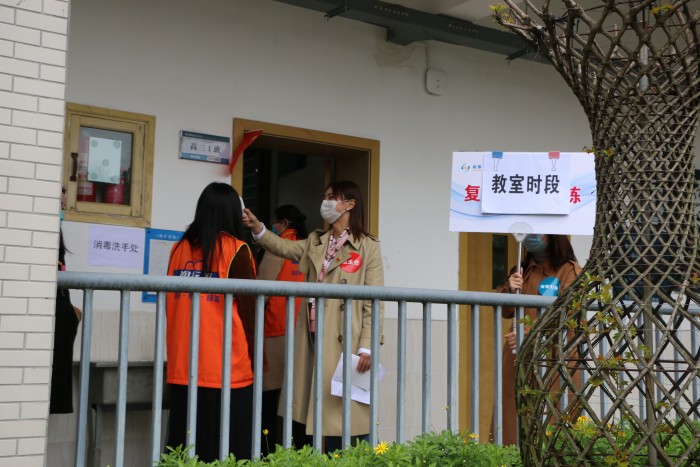 学校高度重视此次演练,提前制定了演练方案及体温异常处理流程,不但请来卫生院的同志分别做了疫情防控知识培训会和班主任培训会,还邀请到市教育局、当地政府、派出所等相关同志到场指导。