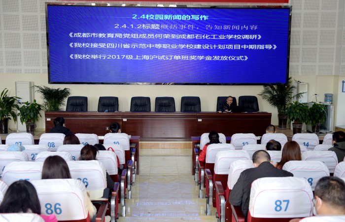 为了提升学校宣传工作质量,4月8日上午,成都石化工业学校在南校区第一会议室召开了宣传工作培训会,副校长黎定成出席会议,学校各部门、各科室、各专业科负责人和宣传工作人员参加会议,会议由行政办公室副主任杨志强主持。