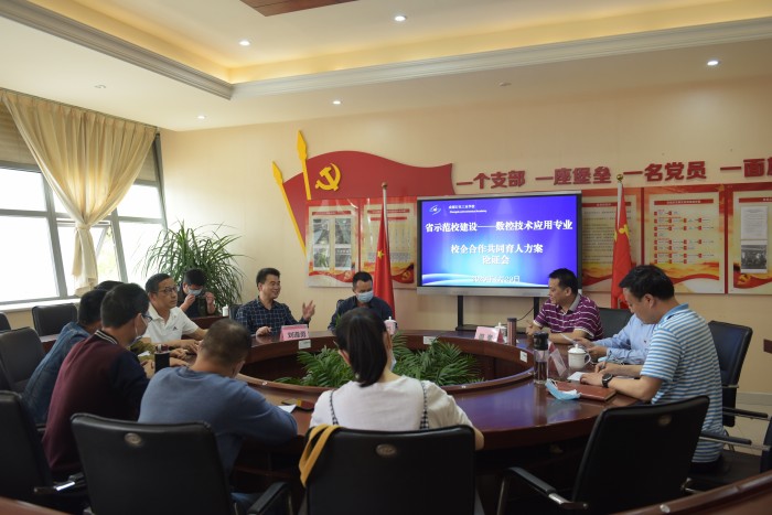4月29日上午,我校数控专业校企合作共同育人方案论证会在教学楼二楼会议室举行,四川工程职业技术学院机电系主任周奎教授、成都特恩数控科技有限公司罗国彬经理、副校长刘遵勇、相关行政及示范校建设专业教师参加会议,本次会议主要对校企联合培养创新人才方案进行论证,形成切实可行的育人方案。