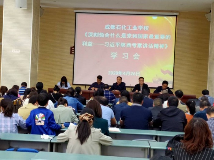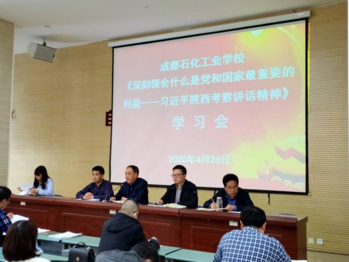 4月26日下午,成都石化工业学校召开了“深刻领会什么是党和国家最重要的利益---习近平陕西考察讲话精神”学习会。会议由党委书记任传久同志主持。