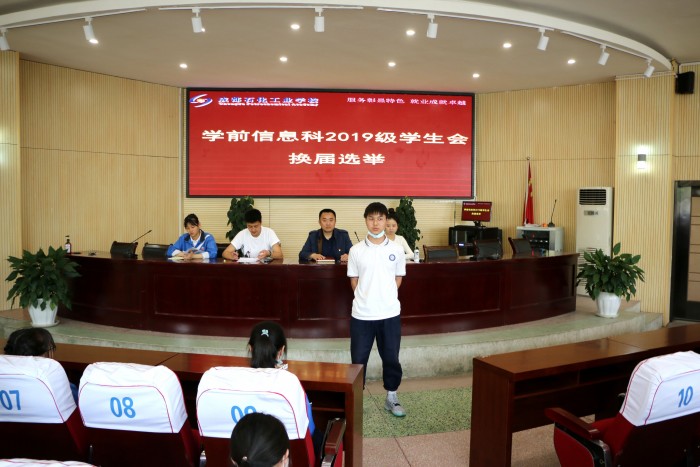 5月8日,成都石化工业学校学前信息科在第一会议室举行了2019届学生会换届选举大会,该科科长、德育副科长、学生会负责老师以及学生会全体同学参会。