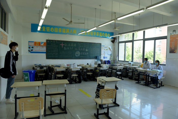 为做到疫情防控和安全体检两不误,彭州市教育局携手彭州市人民医院和中国电信彭州分公司,将2020年的高考体检场地搬到了学校,通过 “送检到校”的方式为学校高考学子助力。