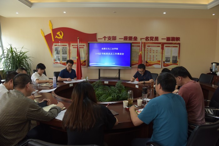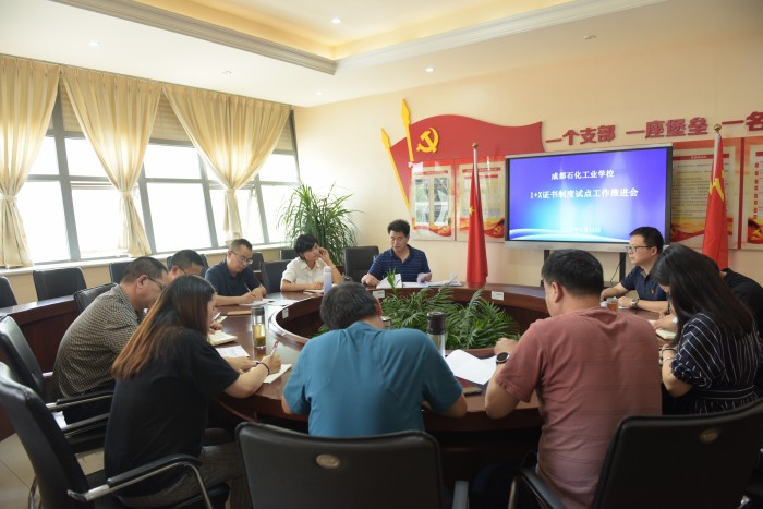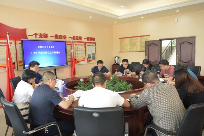 日前,成都石化工业学校召开了1+X职业技能等级证书(以下简称证书)制度试点工作推进会,校长周川益、分管副校长刘遵勇出席会议,培训处、证书制度试点专业科科长、教学副科长参加会议。