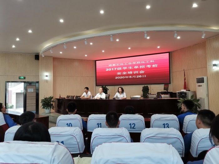 四川省2020年普通高等教育单独招生文化考试将在5月31日进行,为确保高三学生安全顺利参加单招考试,防范和杜绝各类安全事故发生,日前,成都石化工业学校六个专业科分别召开了高三高职单招考试学生行前会。