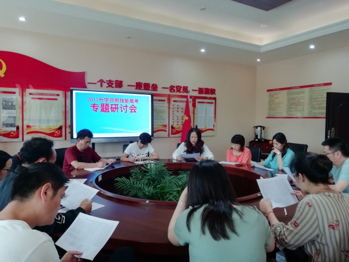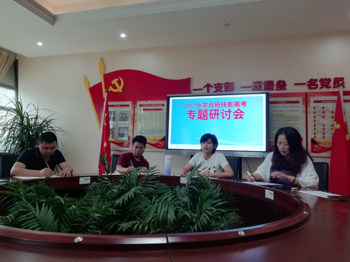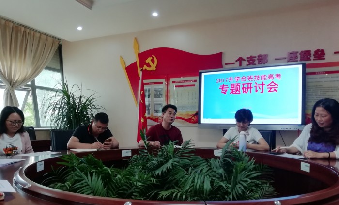 为进一步准确把握今年技能高考命题趋势和后期专业课授课重点,切实提高最后冲刺阶段学生复习备考的有效性和针对性,6月1日,我校综合科在南校区二楼会议室召开了2017级升学合班技能高考专题研讨会。